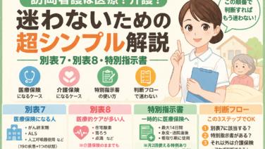 訪問看護が医療保険か介護保険かを迷わず判断するための決定版ガイド。ケアマネジャー向けに、別表7・別表8・特別訪問看護指示書のポイントをわかりやすく整理。判断の流れ、メリット、注意点を網羅。