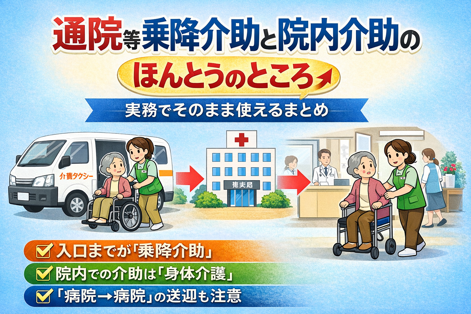 「どこまでが乗降介助?」「院内介助はどう算定するの?」