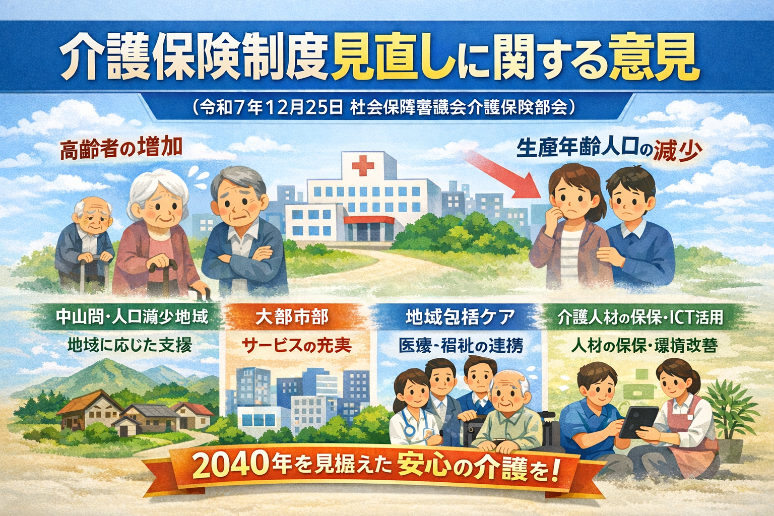 ※本記事は「令和7年12月25日 社会保障審議会介護保険部会『介護保険制度の見直しに関する意見(概要)』」を基に作成しています。