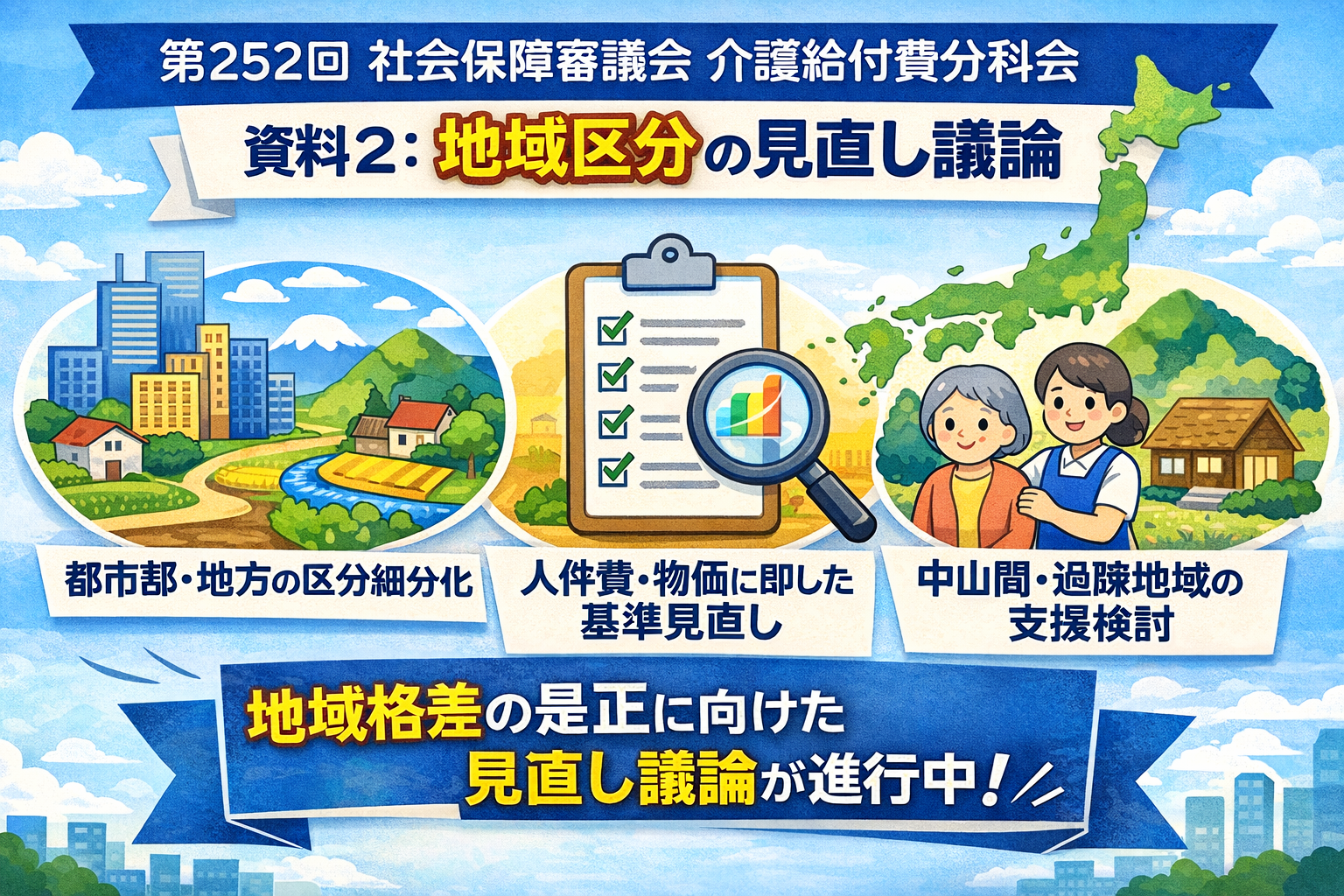 「地域の実情に応じた公平な報酬体系」を目指して、地域区分の見直しが進められています。