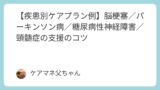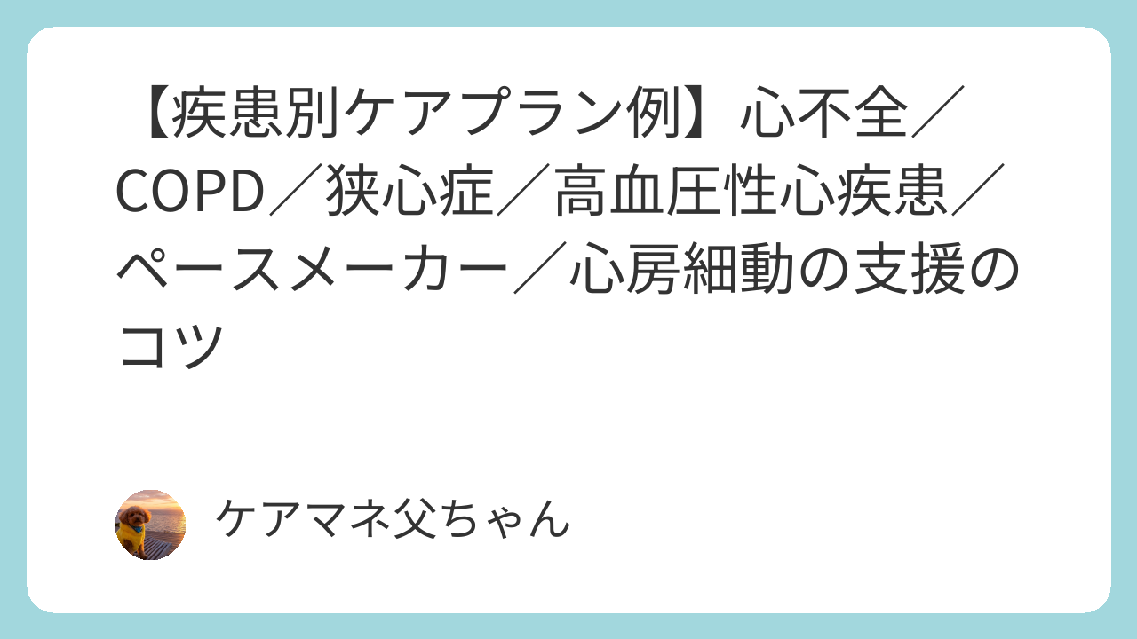 了解です。これまでと同じブログ掲載+コピペ可の実務向けケアプラン例の形式で、