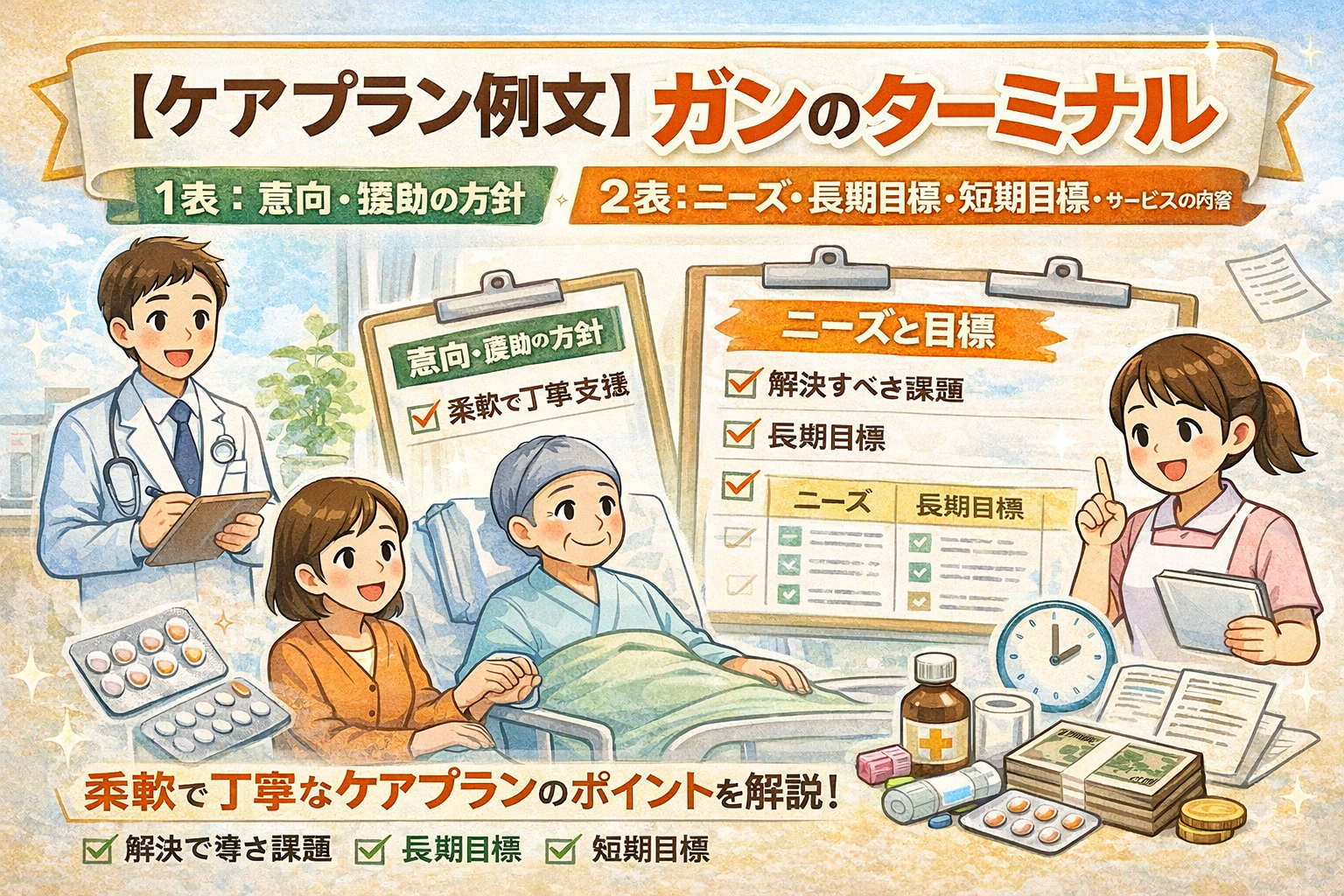 終末期のケアプランは、本人の意向・病状・家族の状況が短期間で大きく変化するため、柔軟で丁寧な支援が求められます。ここでは、作成時のポイントや着目点、実際に使える例文をまとめています。