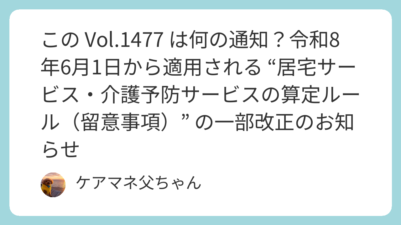 Vol.1477 は、Vol.1476(算定基準改正)に合わせて、 居宅サービス・介護予防サービスの “留意事項(運用ルール)” を最新化した通知。