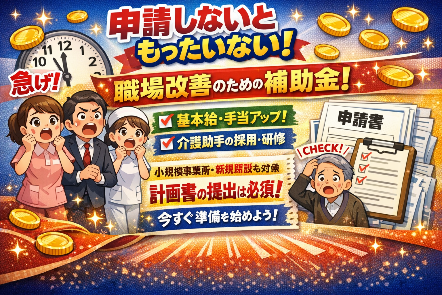 介護現場で働く皆さんの処遇改善と職場の働きやすさを支えるために、国からの補助金制度がスタートしました!