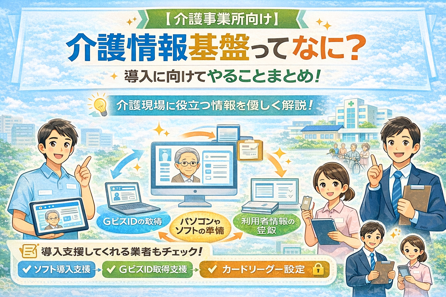 この記事では、「介護情報基盤ってなに?」から「事業所がやるべきこと」、そして「導入支援をしてくれる業者」まで、やさしく・具体的に解説します!
